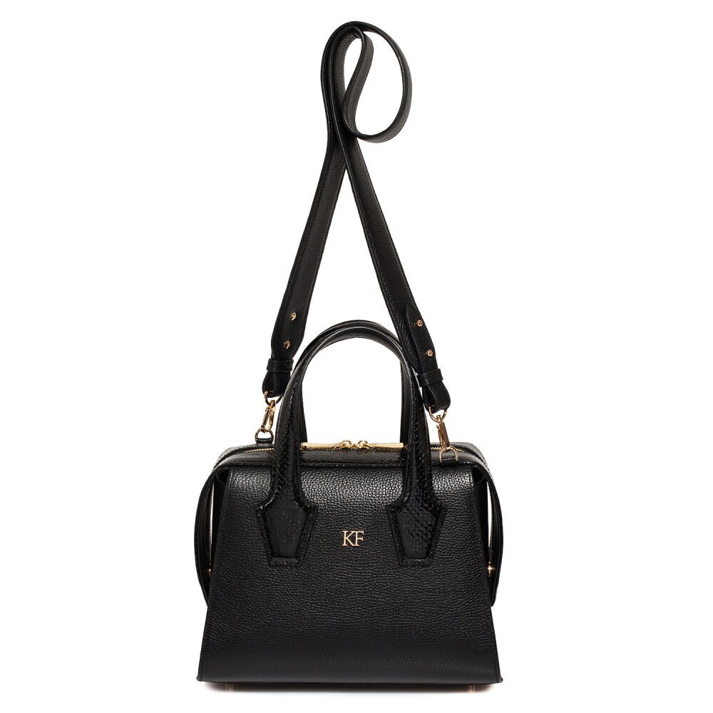 Leather Top Handle Bag, Black Leather Handbag Top Handle, Women's Leather Bag KF-4047